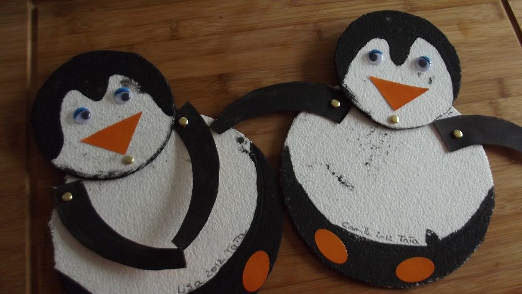 coller un triangle pour le bec, des ovales pour les pates (gommettes)